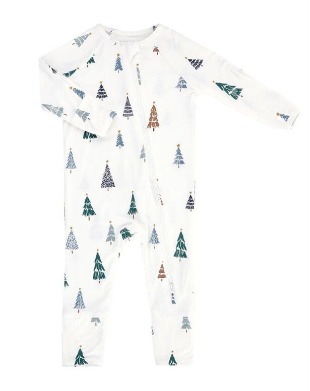 Bring the magic of the holiday season to baby's wardrobe with this cozy romper, featuring a charming tree print that's perfect for festive days and winter nights